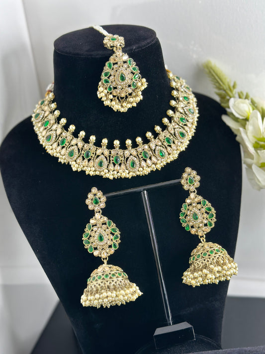 Sold outPachi kundan necklace set