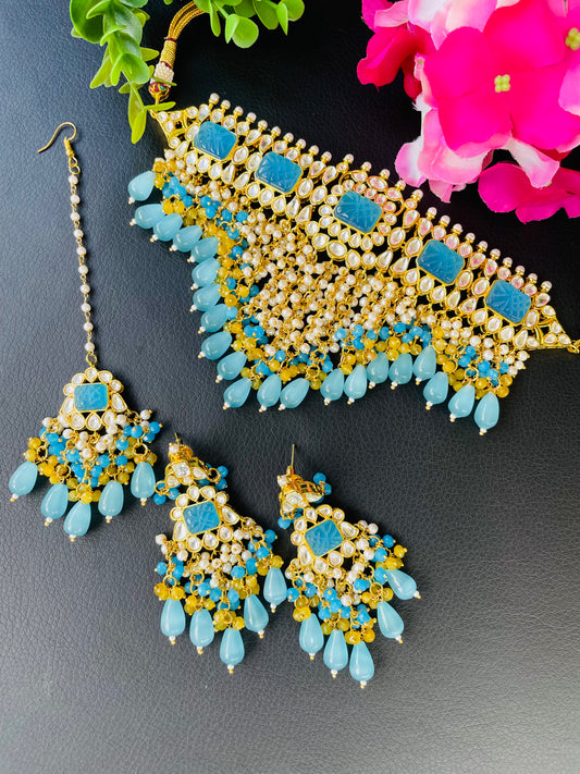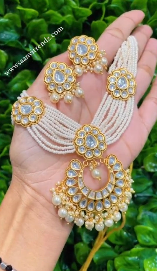 Statement neck piece with earrings and tikka