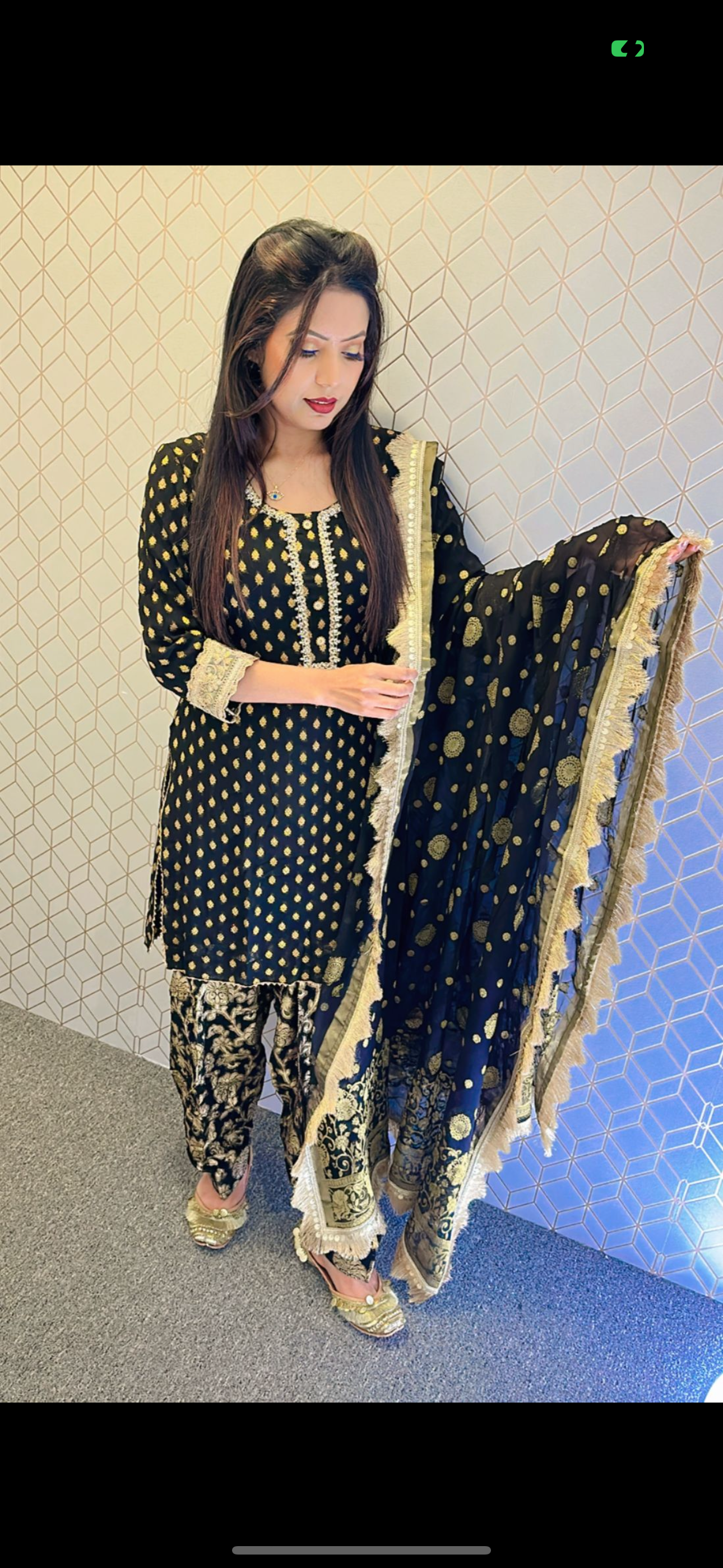 Super gorgeous black suit in georgette fabric with silwaar and four side lace work dupatta