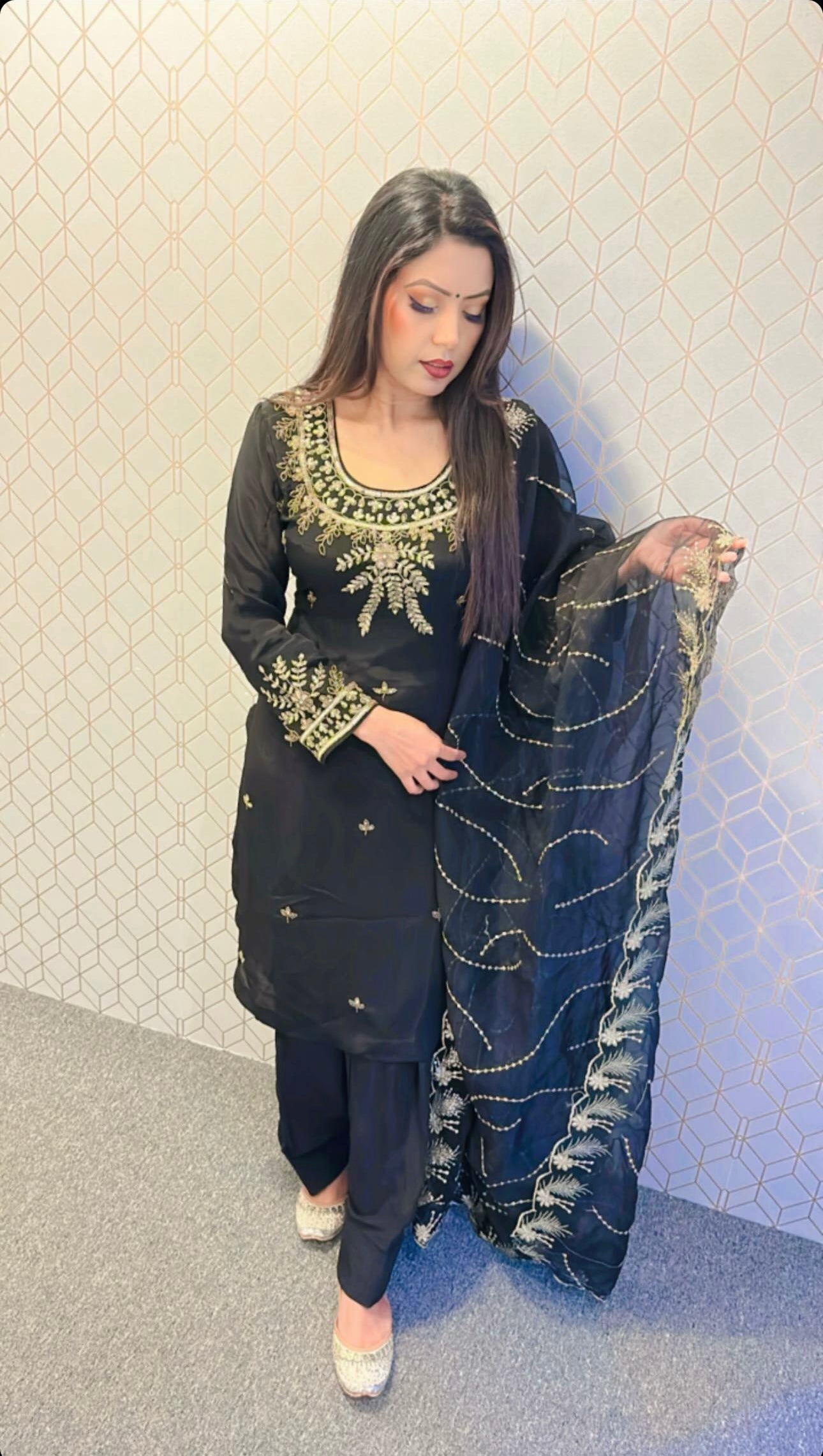 Beautiful silwaar suit with hand embroidery comes with dupatta