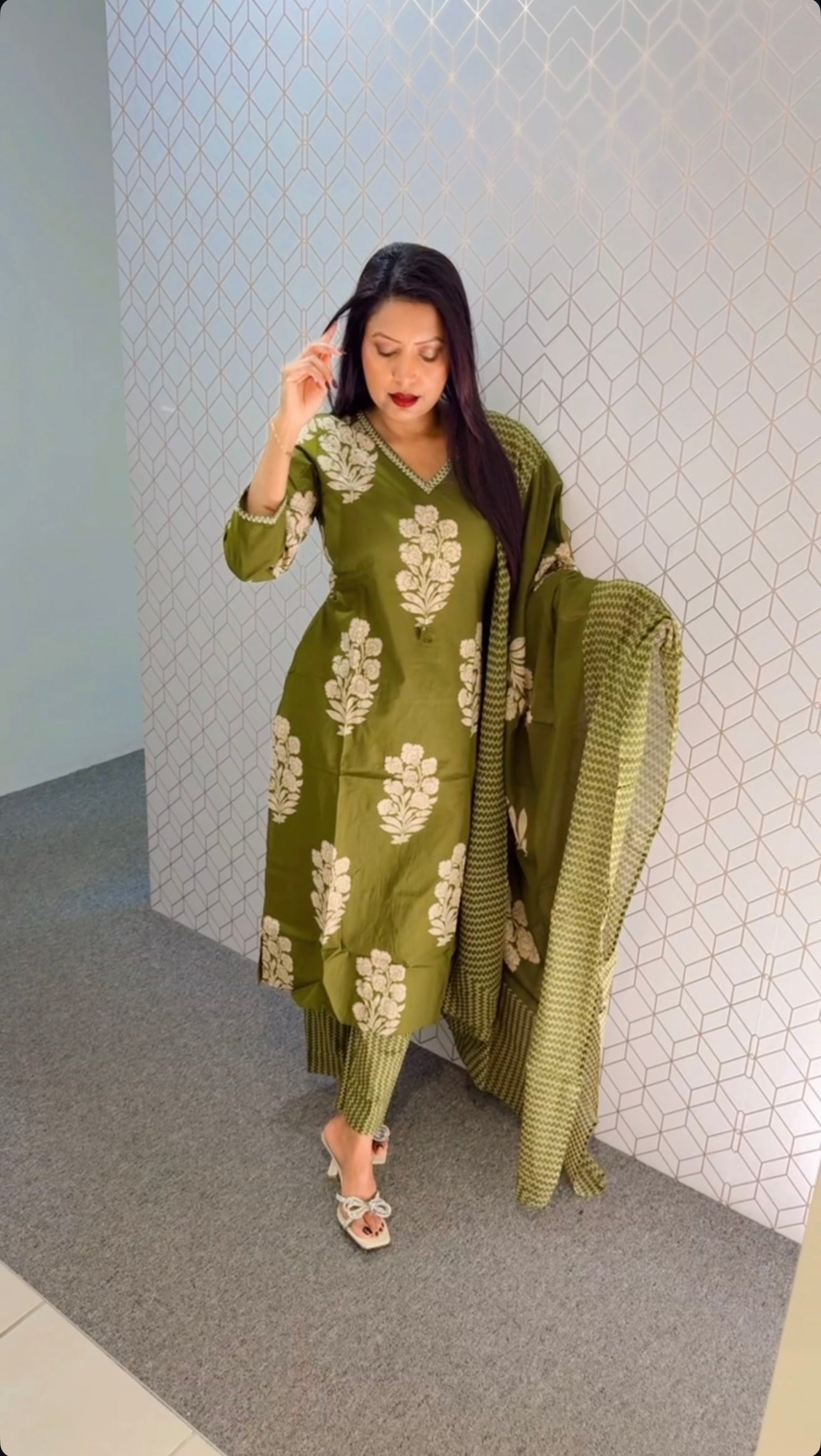 Lace work detailing on shirt & pants, comes with cotton dupatta