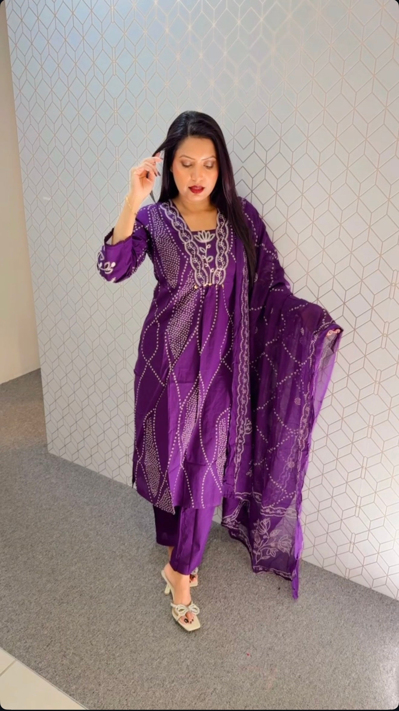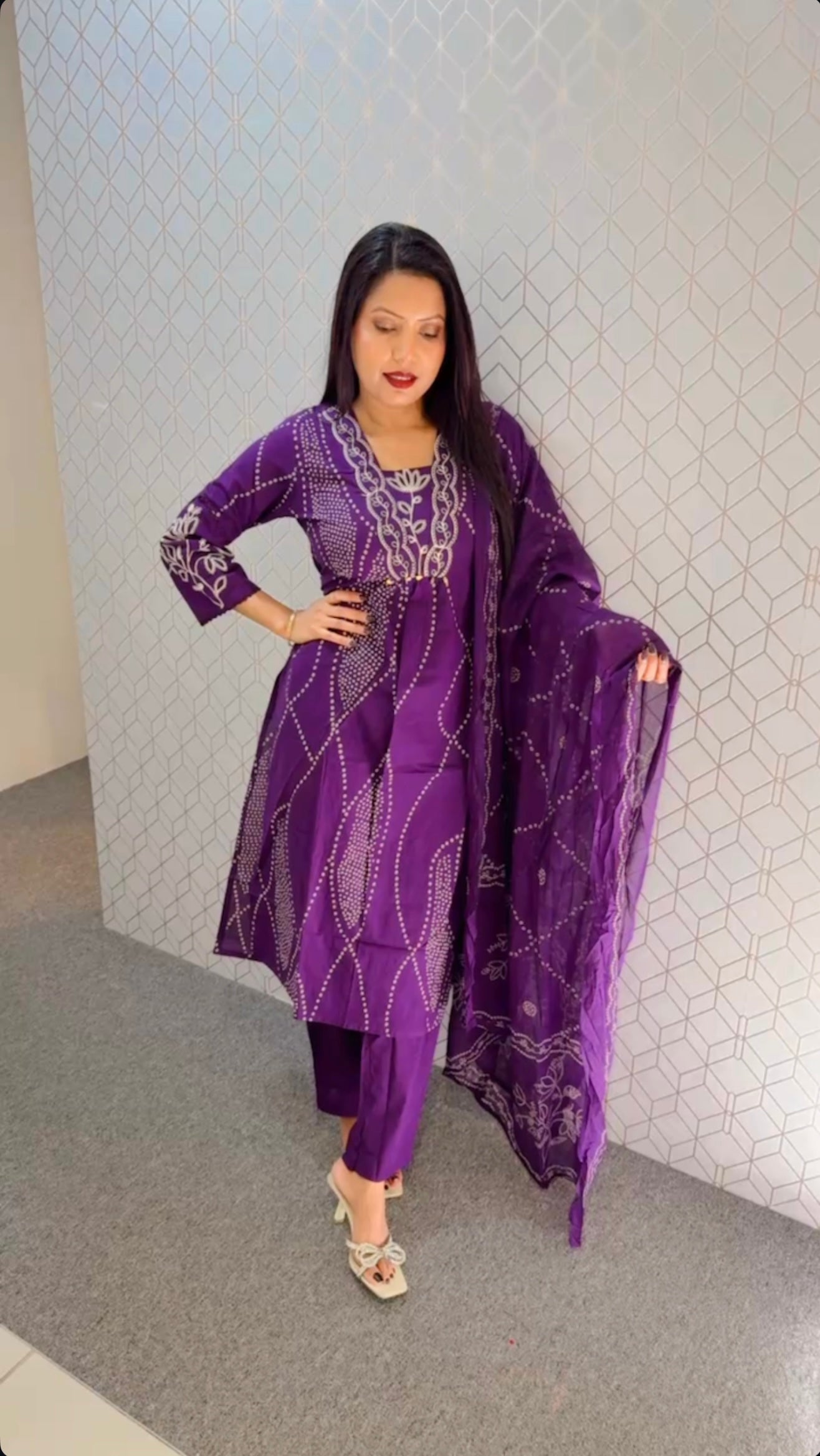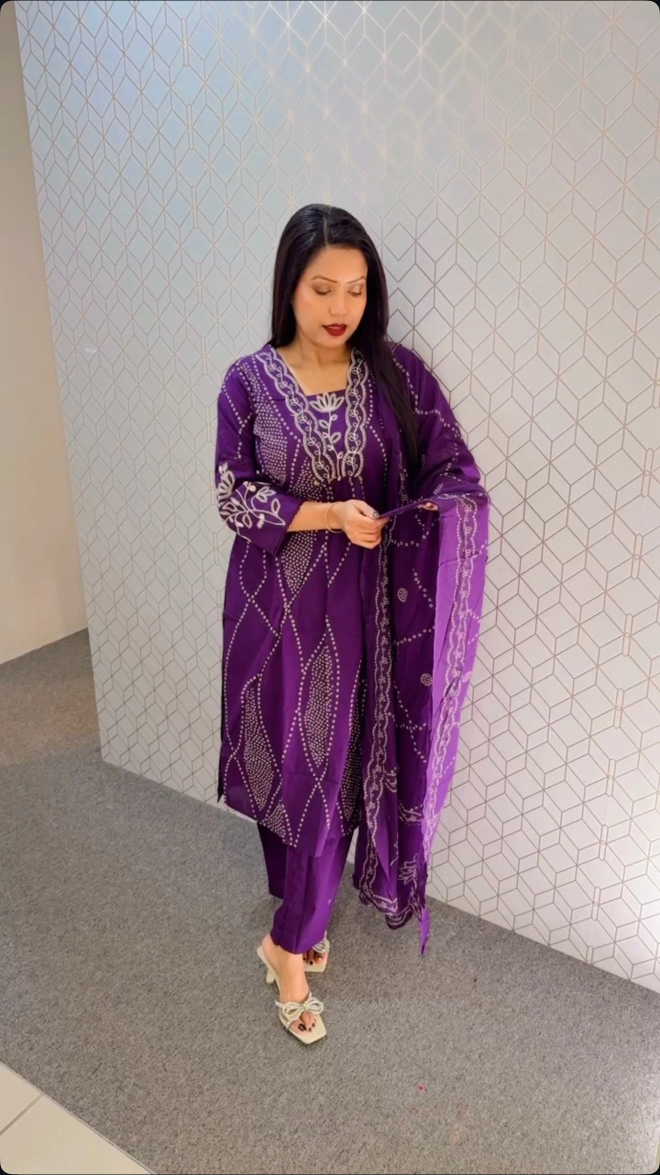 Lace work detailing on shirt & pants, comes with cotton dupatta