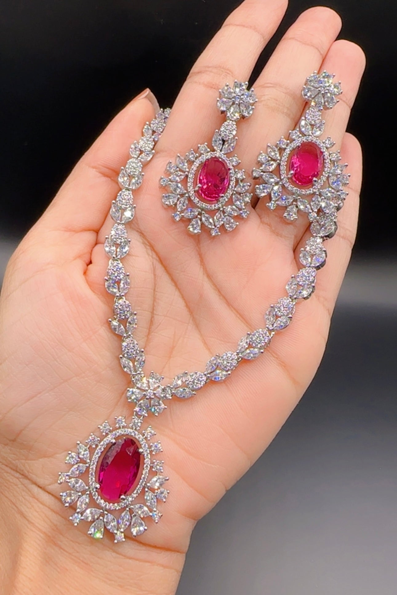 Super gorgeous necklace with earrings in premium quality American diamonds