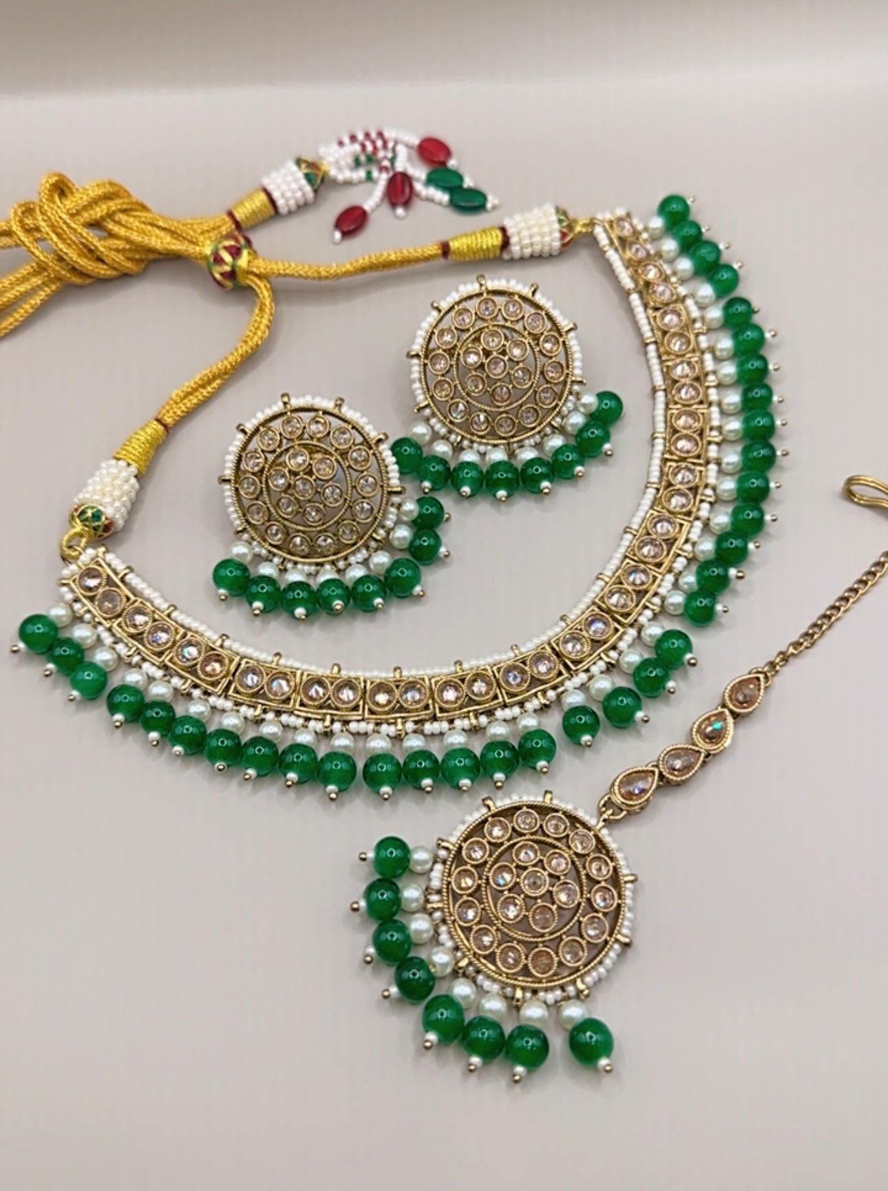 Super gorgeous necklace with earrings and tikka in fine reverse Polki