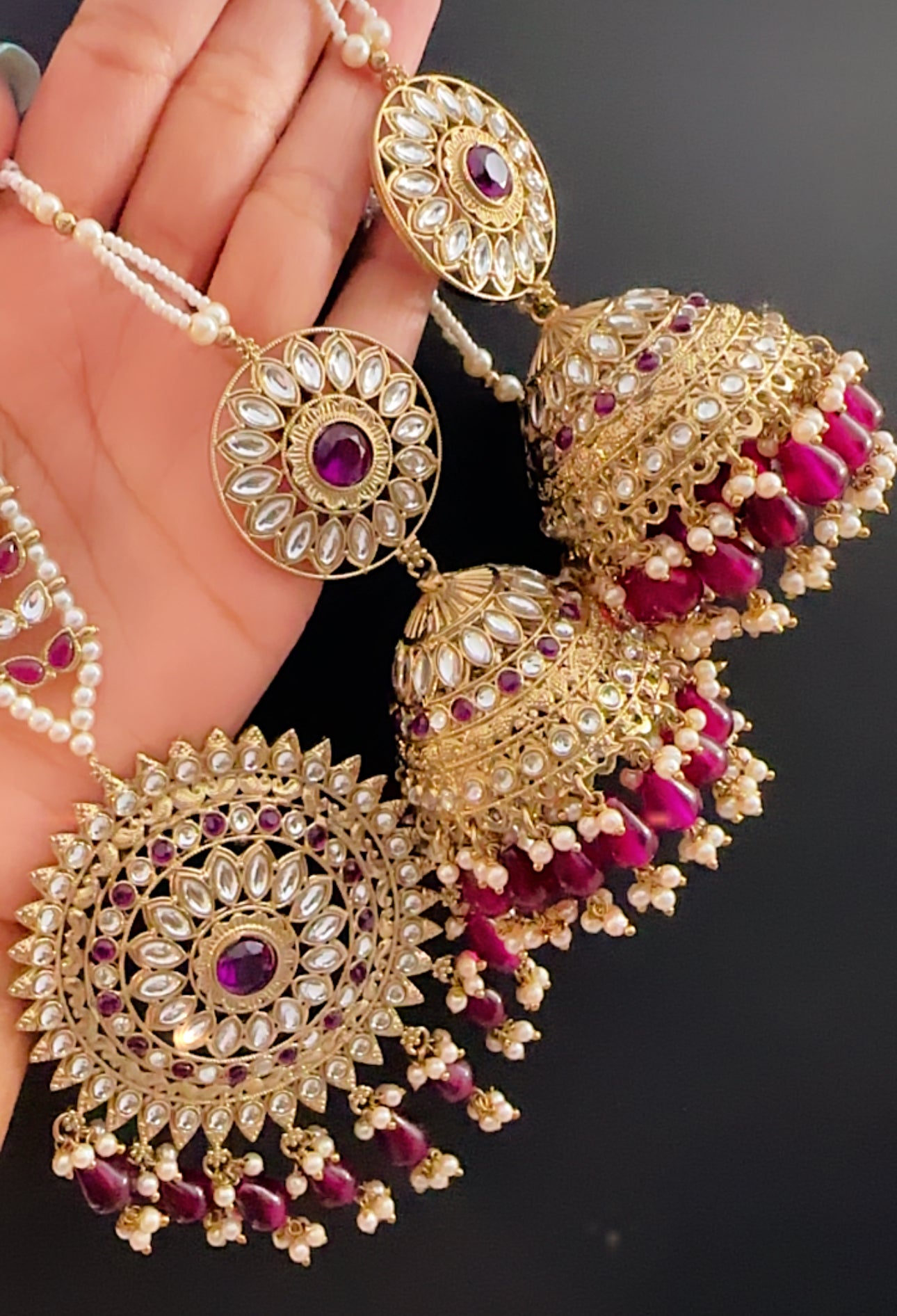 Jhumki tikka set wine purple