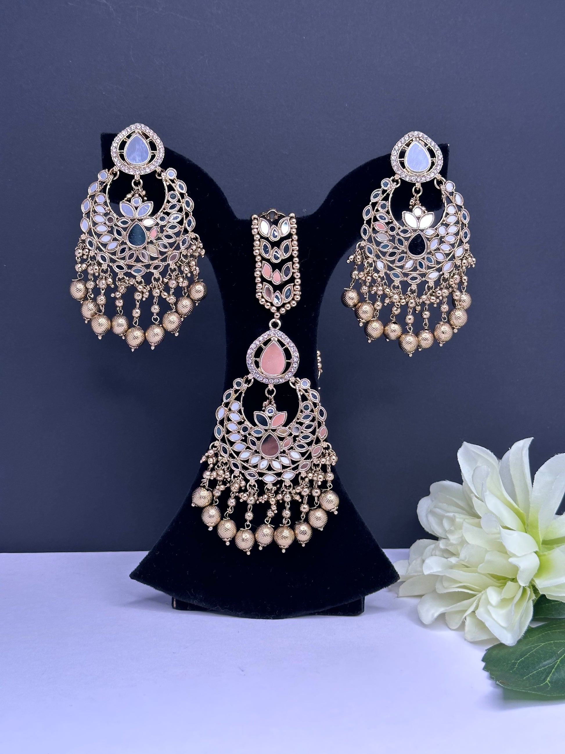 Mirror tikka set in golden