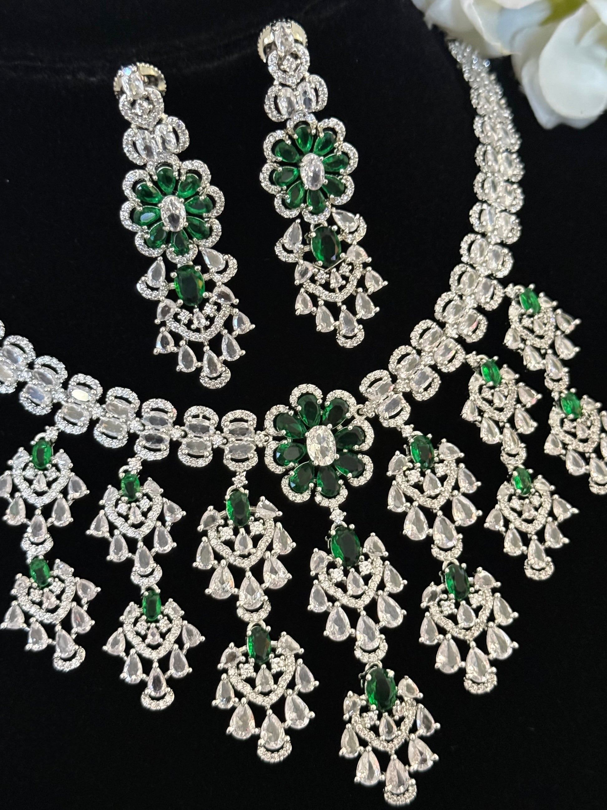 Beautiful necklace with earrings in premium quality lab created cubic zirconia