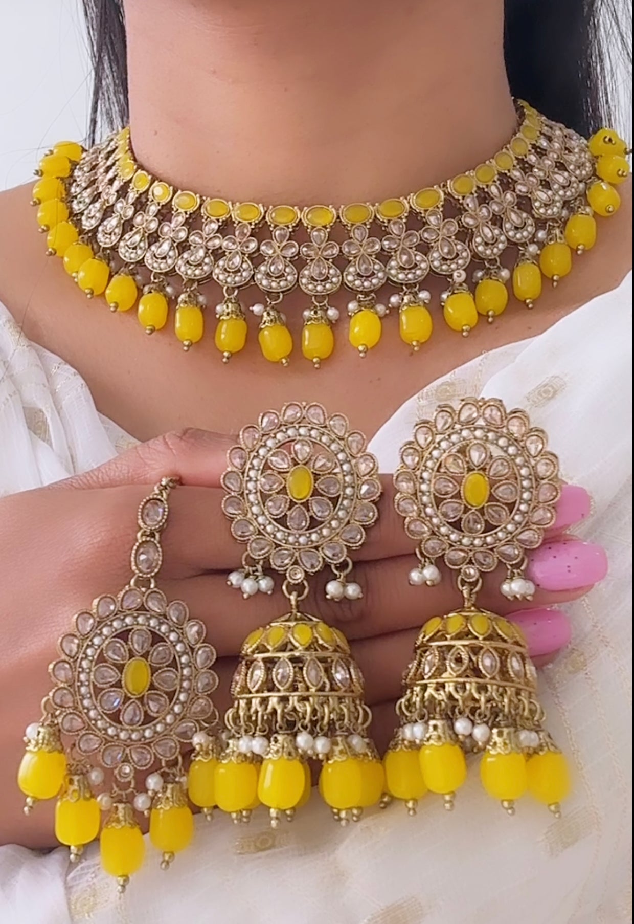 Necklace set in yellow colour