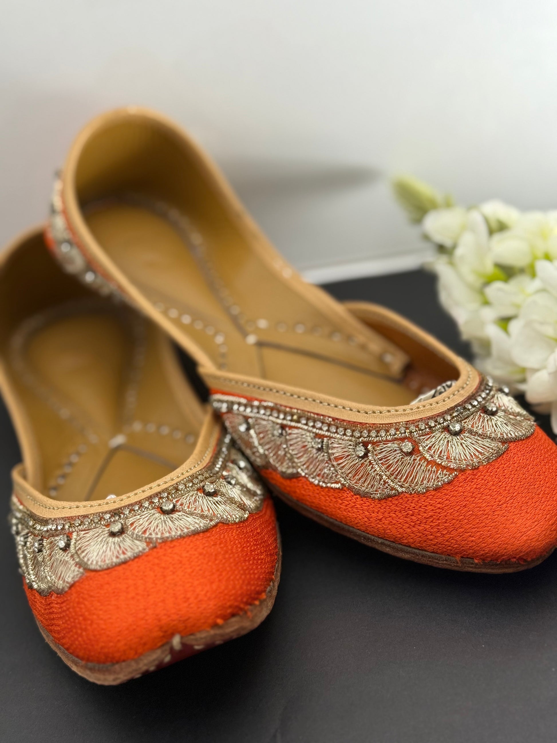 Premium quality jutti with leather lining, double cushioned very soft and comfortable in orange colour. Plzz confirm your size before placing your order