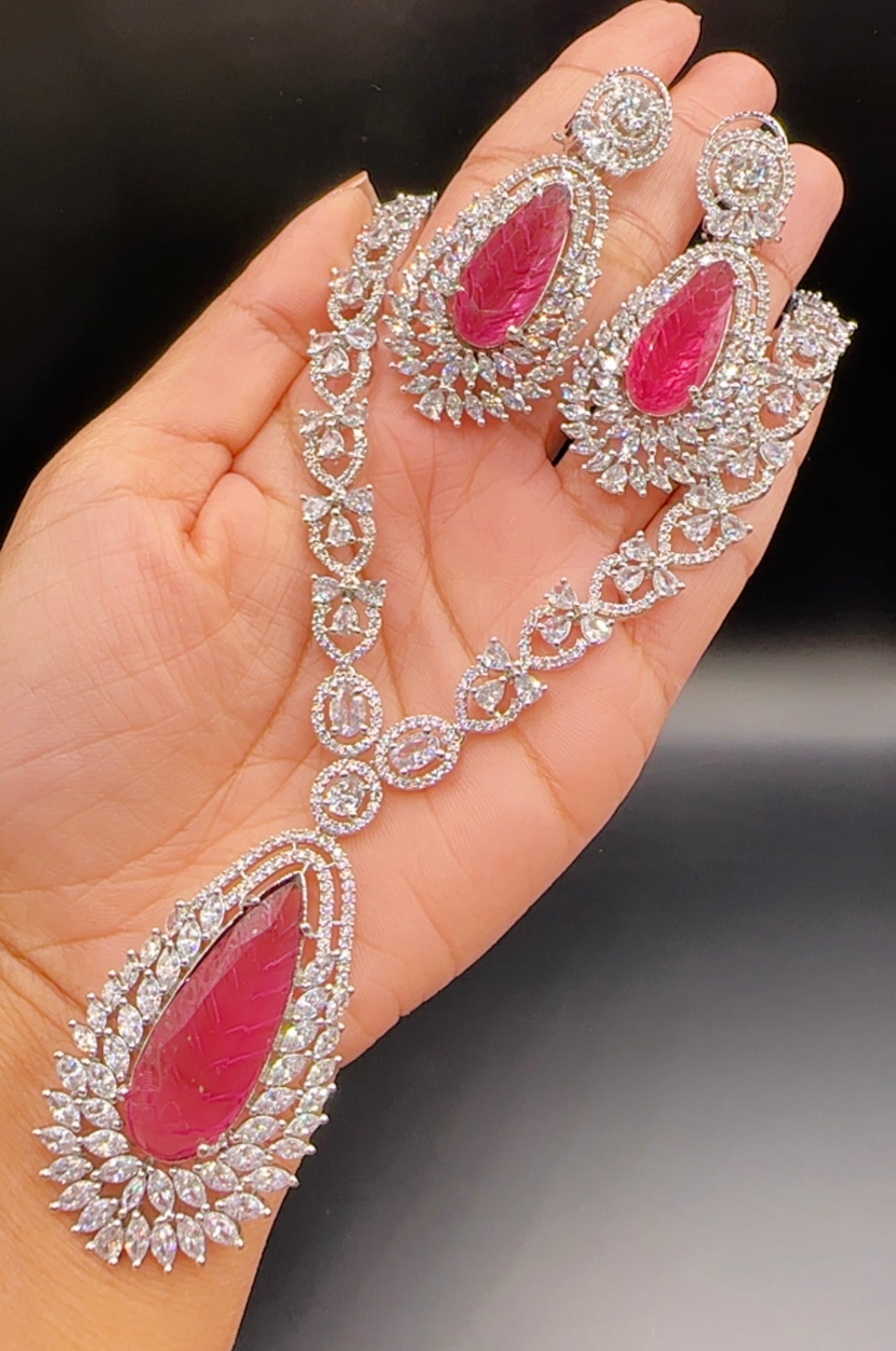 Super gorgeous necklace with earrings in premium quality American diamonds