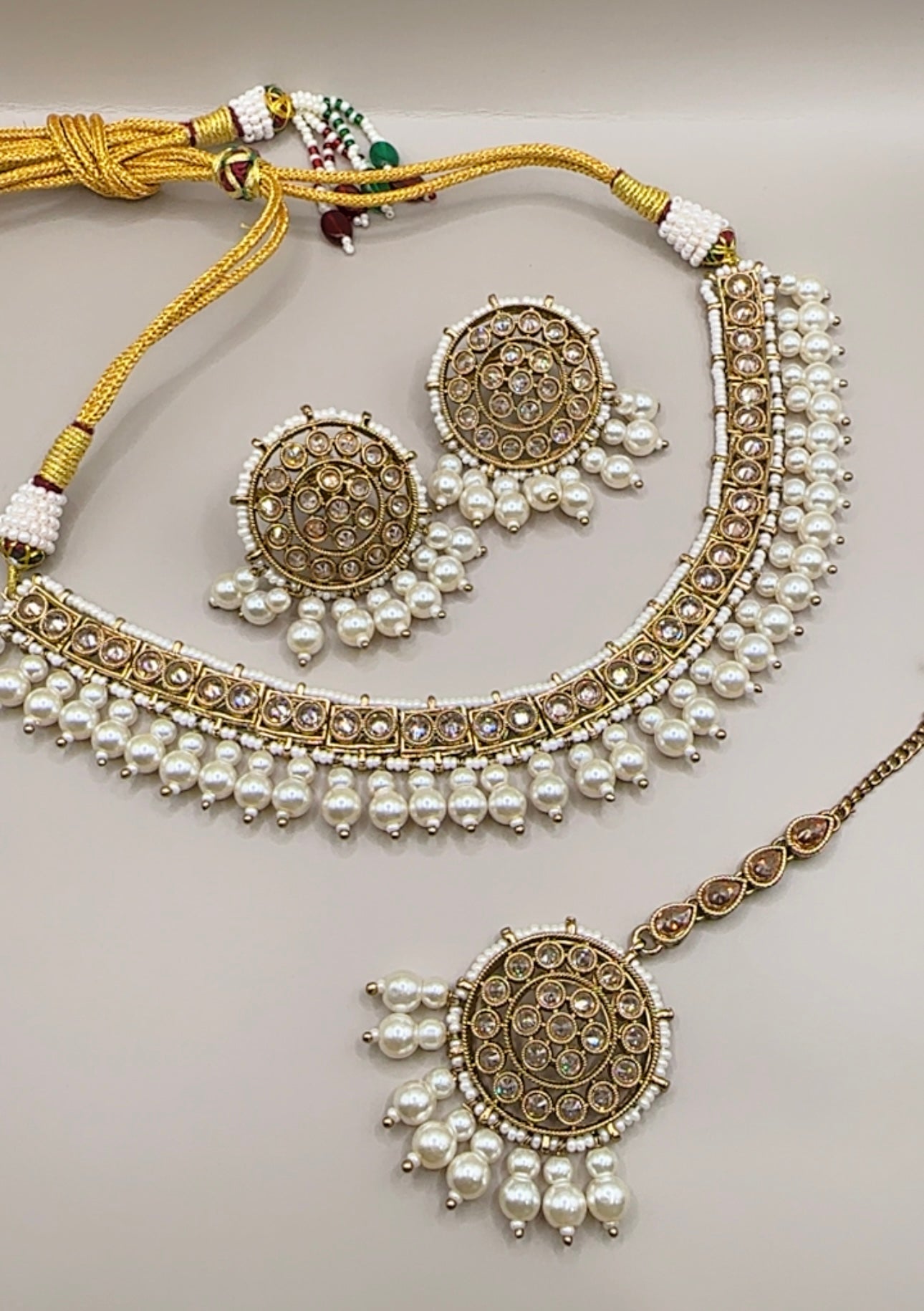 Super gorgeous necklace with earrings and tikka in fine reverse Polki