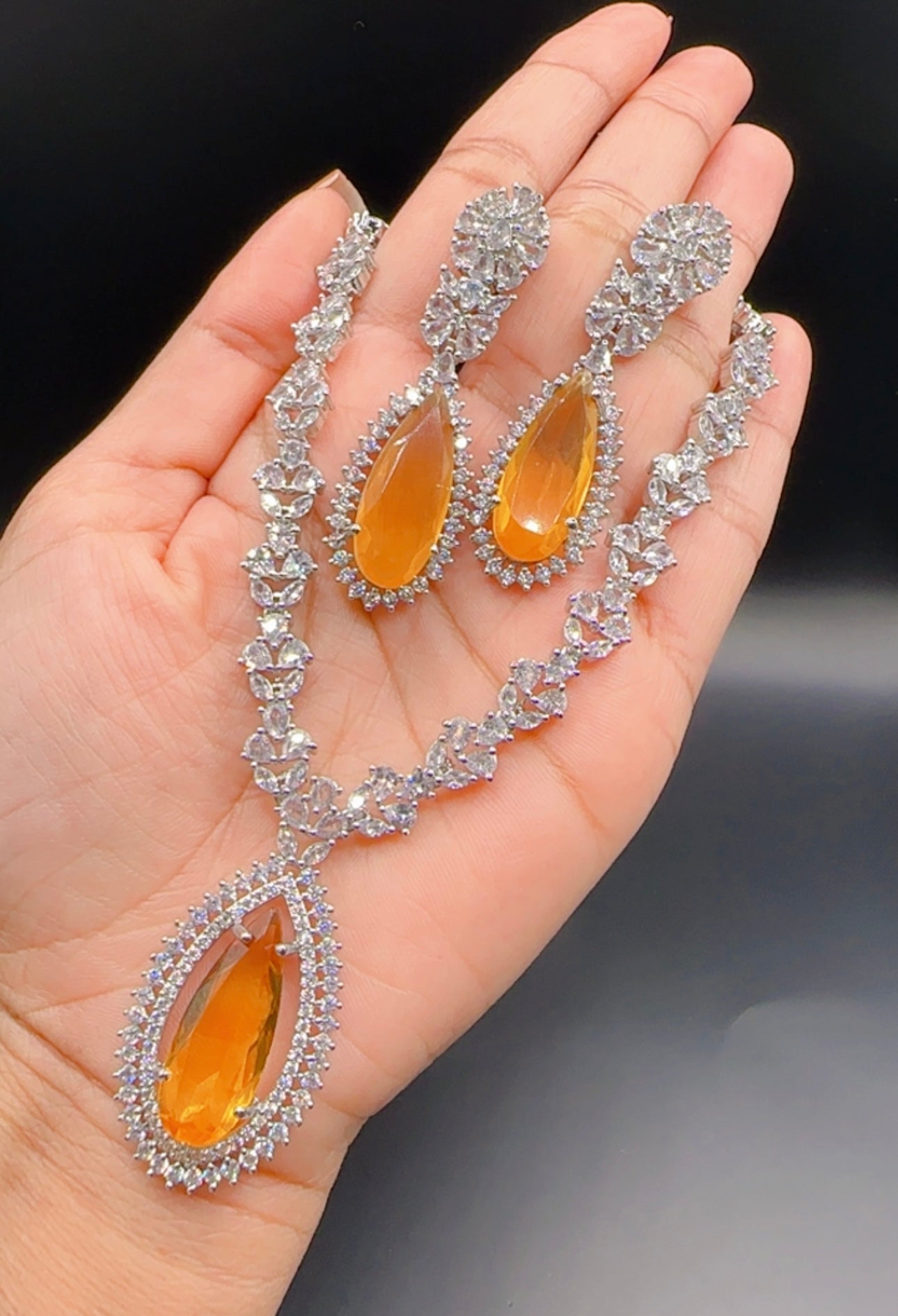 Super gorgeous necklace with earrings in premium quality American diamonds